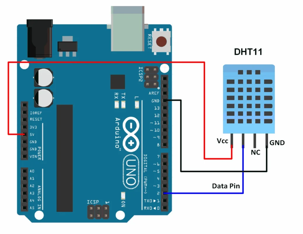 The DHT sensors are made of two parts, a capacitive humidity sensor and a thermistor. There is also a very basic chip inside that does some analog to digital conversion and spits out a digital signal with the temperature and humidity. The digital signal is fairly easy to read using any microcontroller. There are two types – DHT11 and DHT22. Both have the same pinouts but have different characteristics. Summarily, the DHT11 sensor is cheaper and portable as compared to the DHT22 but if you want more accurate readings, the DHT22 is your best choice. So in today’s lesson, we will learn how to set up the DHT11 Temperature and Humidity Sensor so it can record the Temperature and Humidity values and display on the Serial Monitor. Additionally, we will discuss how a Temperature Monitoring System can enhance the accuracy and reliability of your readings.